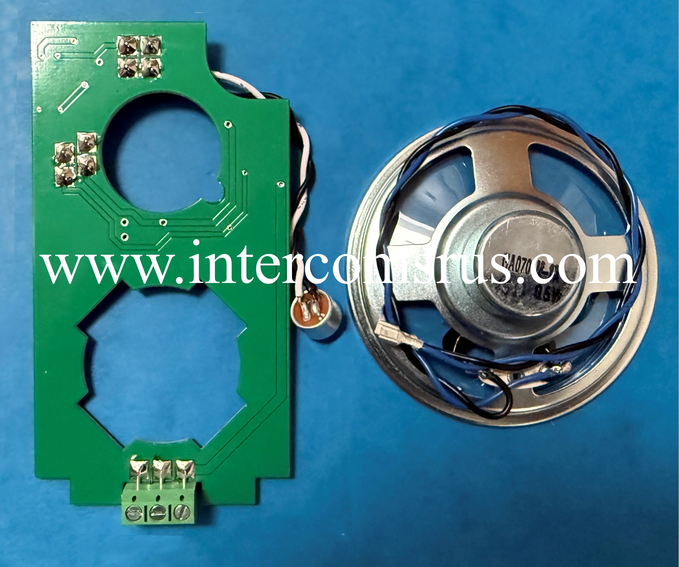 The Entryphone 92 ETXAMP is used in stainless and special finish panels in the Entryphone range. The PCB is usually housed behind a black plastic housing held in place with 4 x small nuts on the back of the panel. Unit comes complete with loud speaker, PCB and microphone for 3 terminal hook up C, D & E.